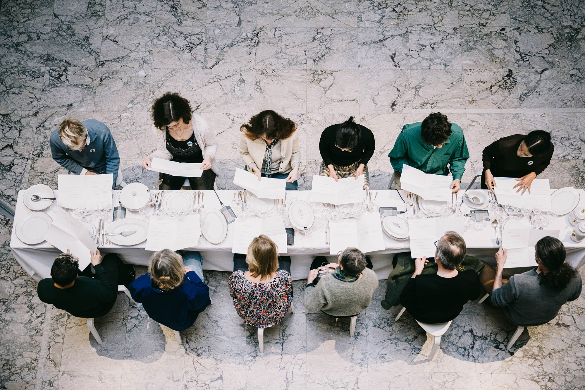 Collector Frédéric de Goldschmidt invites you to his exhibition space, Cloud Seven, to take part in The Banquet, a performance created by Ariane Loze. Seated around a set table, each guest plays one of the characters imagined by the artist. As a starter, each plate bears the words of that character. The guests-turned-actors engage in an unexpected game—entering the mind of another, leaving themselves for a few moments, and inhabiting the psychic space of someone else.