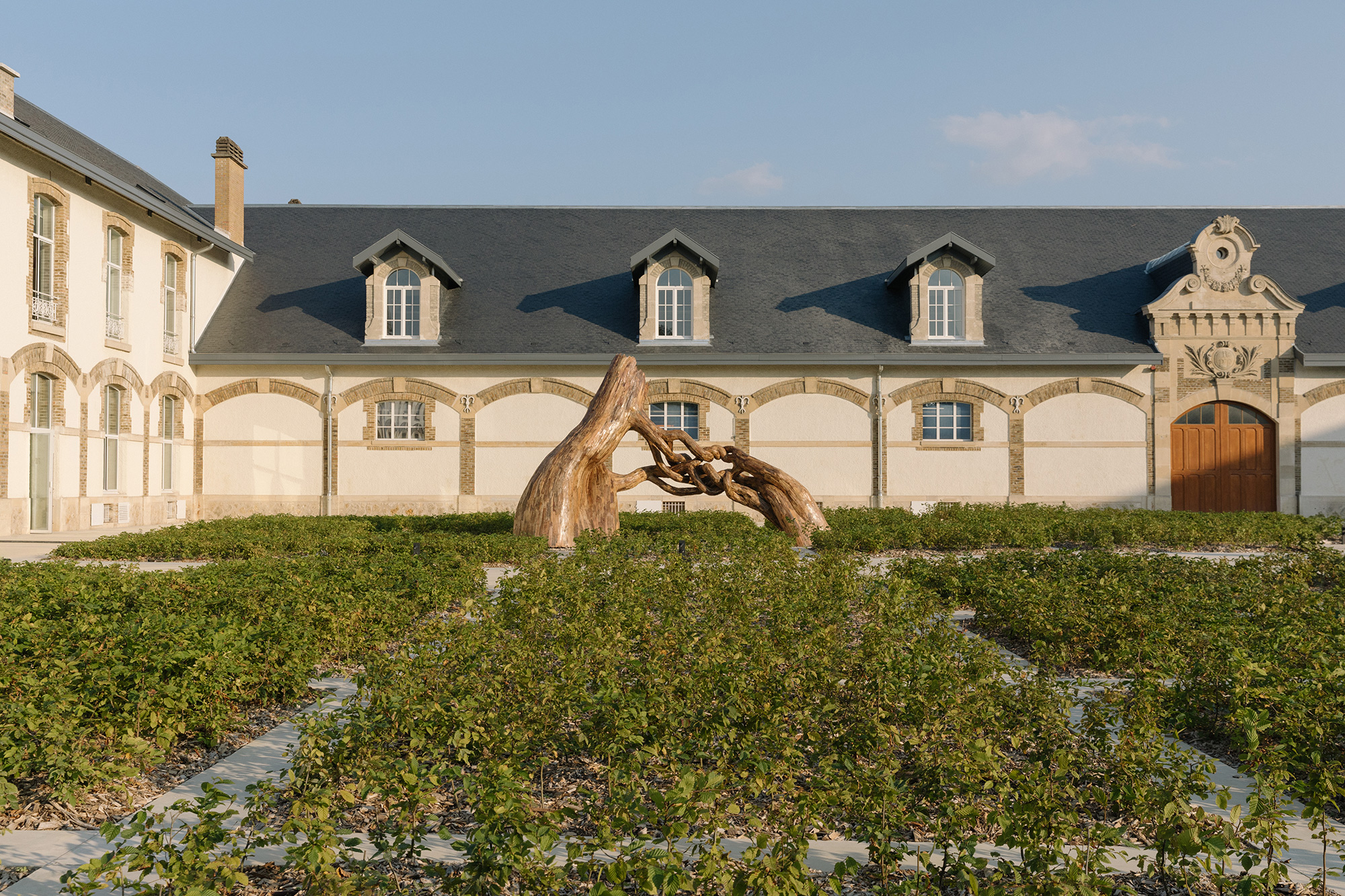 Maison Ruinart donates an immersive experience at Ruinart in Reims. Your visit begins with a tour of the chalk cellars, a UNESCO World Heritage Site where Ruinart champagnes are produced. It continues in one of the private dining rooms, where you will enjoy a five-course menu paired with the iconic cuvées of Maison Ruinart. At the end of your lunch, you will discover the new Nicolas Ruinart Pavilion, designed by Japanese architect Sou Fujimoto, with its secret cellar reserved for initiates and its sculpture garden. During a stroll through the wooded park, you can also learn more about Maison Ruinart’s commitment to preserving biodiversity.