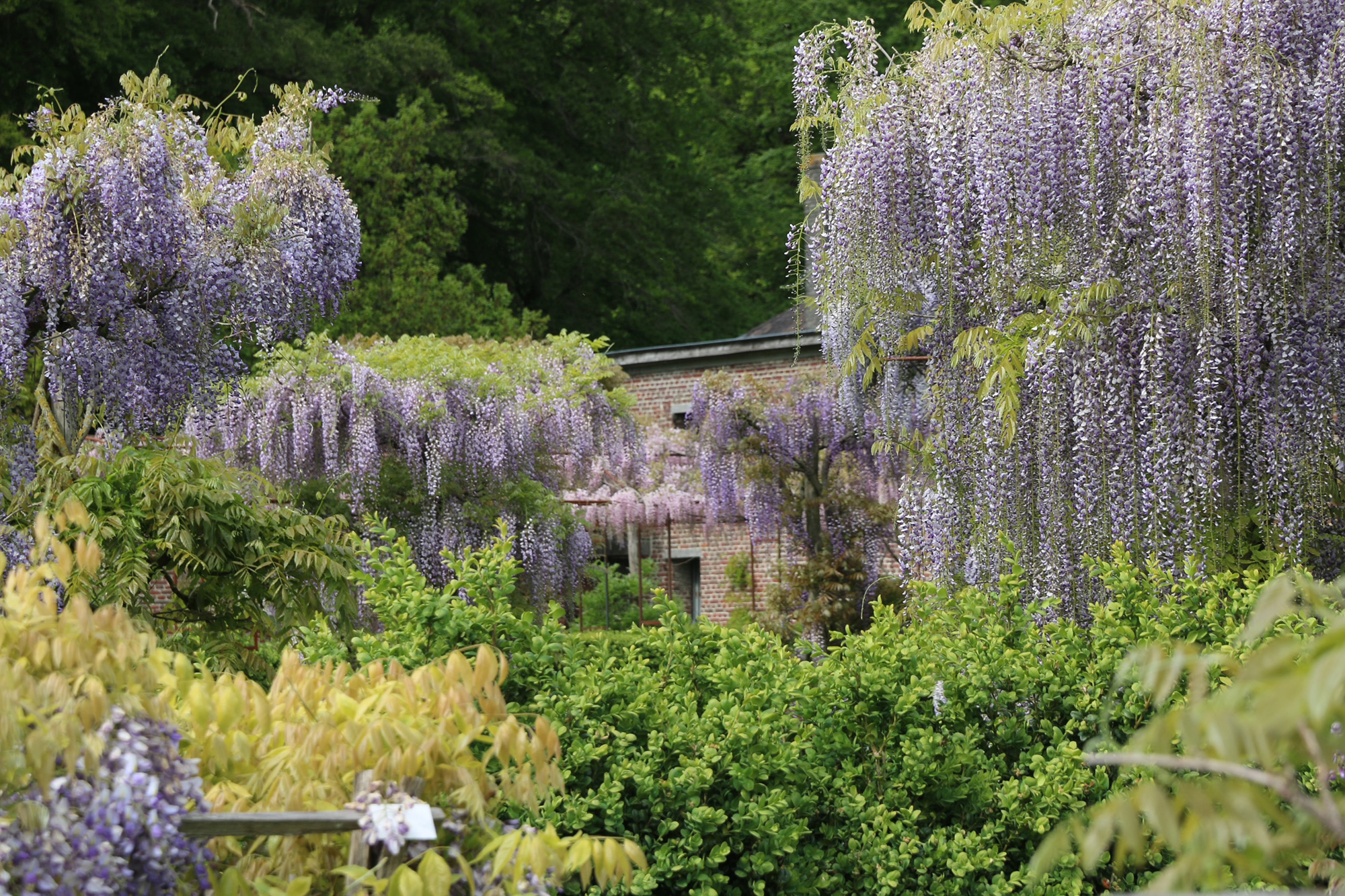 Some twenty years ago, Philippine d’Ursel and Marc Libert of the Ghent Botanical Garden took the initiative to create a Wisteria garden on the estate of Beerlegem Castle. The garden is located in the former petit potager (small vegetable garden), measuring 3,000 square metres and surrounded by an 18th-century side building, garden walls, ponds, and a rich park with oaks and beech trees. More than 100 varieties of wisteria are displayed in a beautiful setting of buxus rooms, pergolas, walls, and lanes. You will find over 300 wisteria plants from Chinese, Japanese, and US origins, as well as new creations in different shapes and colours, ranging from white to deep blue and pink. With flower clusters reaching up to 80 cm, it is a truly unique garden. The Beerlegem Wisteria Garden has gained international recognition, welcoming visitors from across Europe, the US, China, and Japan.